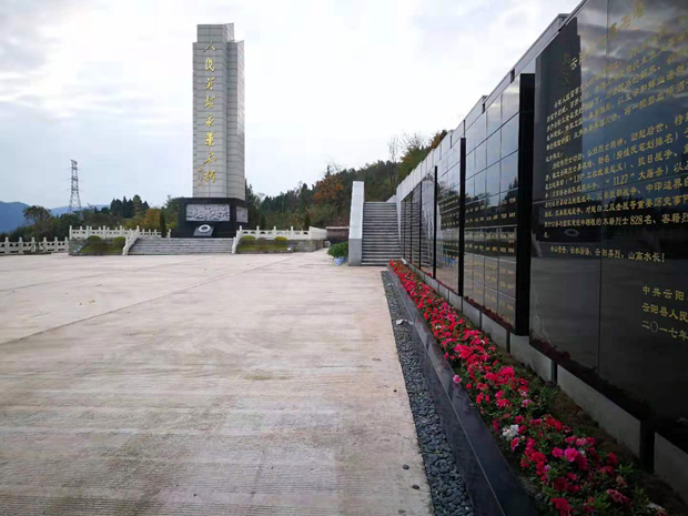 陵園規劃占地1090畝。按我國傳統皇陵中軸線方案規劃布局。氣勢宏大,又輔以“金水玉帶”的典型風水格局,莊重而典雅。陵園對岸的“玉帶村”、“福祿村”(原地名)和陵園遙之呼應。山勢如“狀元筆架”形成了“集天地之浩氣于園內,聚萬物之靈性于陵中”的神奇效應。難怪國內著名的風水專家,北京的一凡大師看過此地后,不勝感嘆,驚為天人。實為逝者安息之上上風水寶地也!
