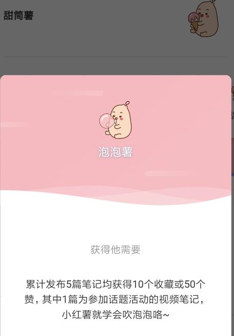 升級必須發「視頻」,比如第4個等級「泡泡薯」的要求是累計發布5篇筆記均獲得10個收藏或50個贊,其中1篇為「參加話題活動」的「視頻筆記」。